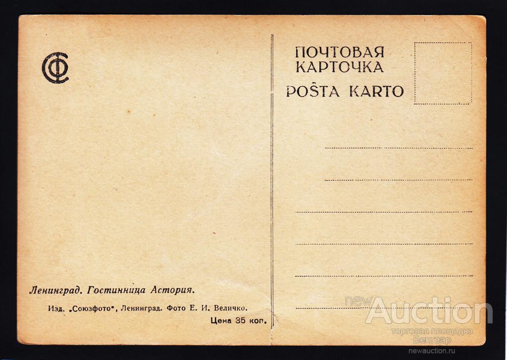 Купите "Ленинград. Гостиница Астория." по цене 70a.Покупайте сейчас, чтобы не упустить эту отличную цену на “Auction.ru”.