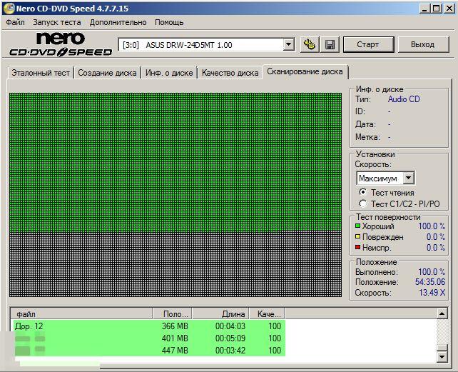 ошибок чтения нет (проверен программой Nero CDSpeed на максимальной