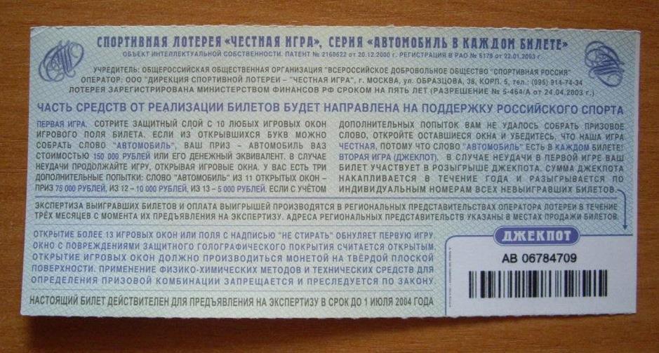 Лотерея "Честная игра" 2
