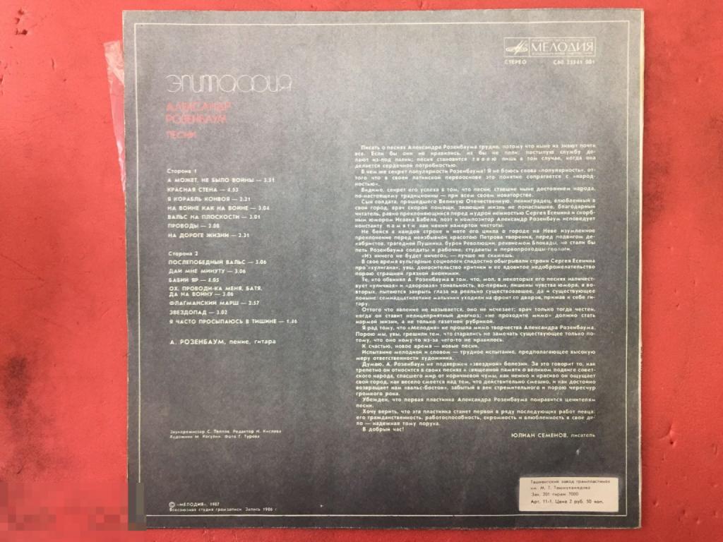 Купите "LP Александр Розенбаум - Эпитафия " по цене 100a.Покупайте сейчас, чтобы не упустить эту отличную цену на “Auction.ru” или сделайте свое предложение продавцу.