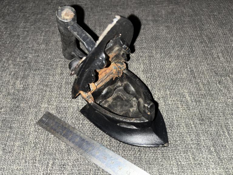 Маленький угольный утюжок. Длина 12 см. Покрашен черной краской!
