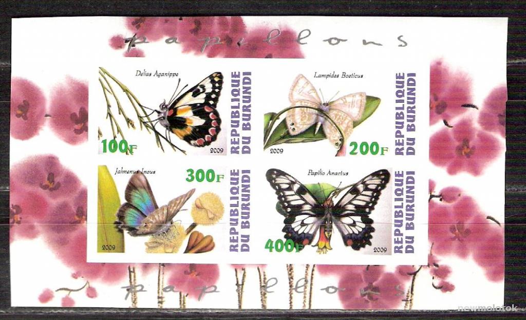 марки Бурунди чист м/л бабочки
