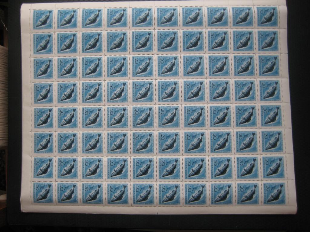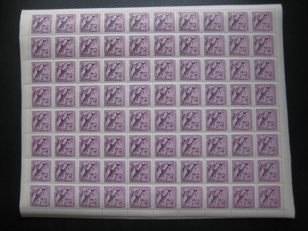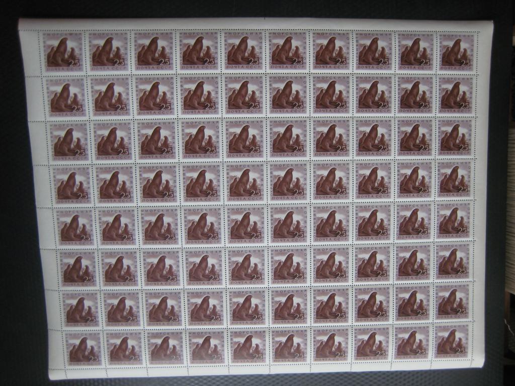 Марки без наклеек. Есть надрыв по перфорации до марки. При отправке почтой лист складывается пополам.