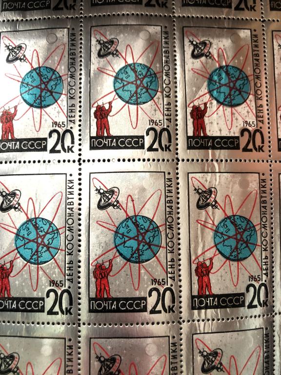 марки ссср 1965 День космонавтики ,фольга листы ,номер по каталогу соловьева 3189,3190 , цена за комплект 2шт