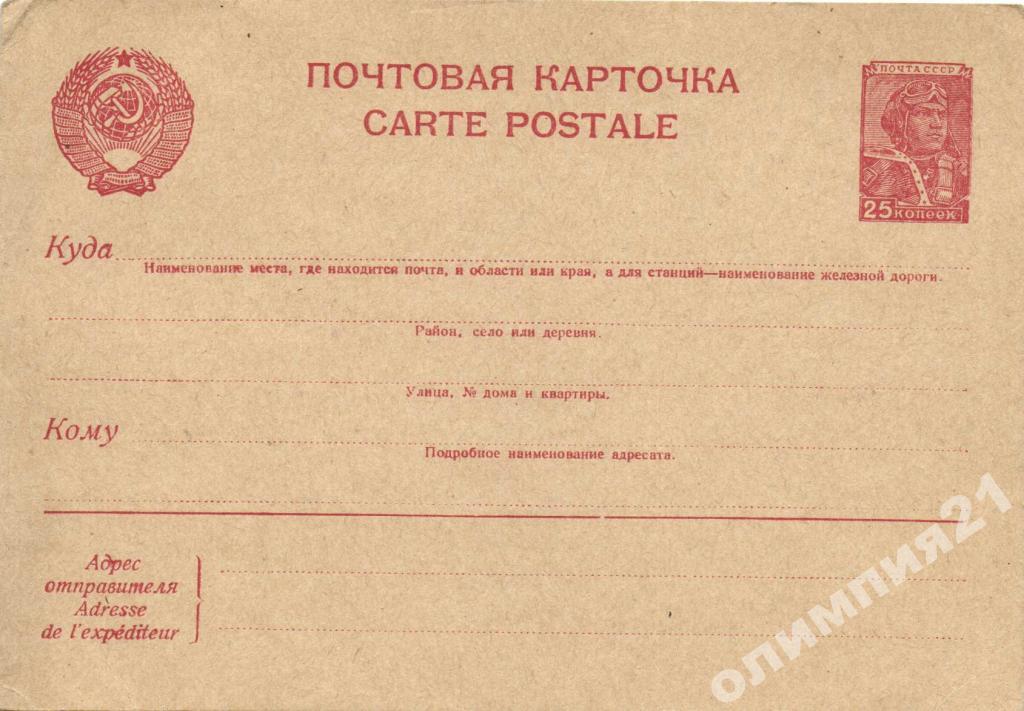 МАРКИРОВАННАЯ ПОЧТОВАЯ КАРТОЧКА