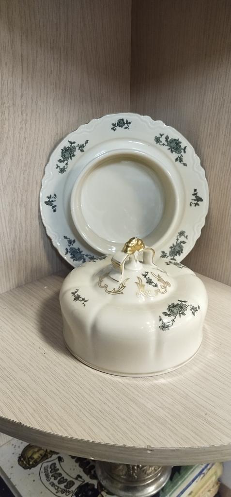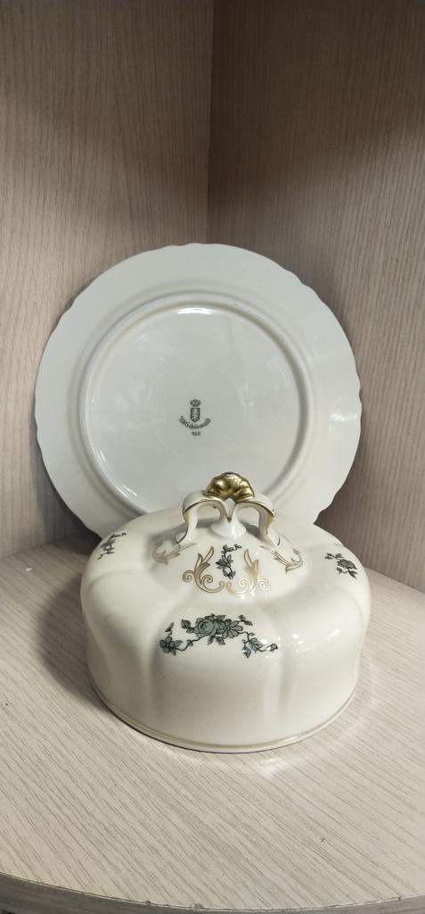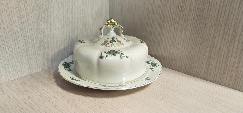 Маслёнка. Германия. Фарфор. Высота 9.5 см. Диаметр 18 см. Диаметр ёмкости для масла 10 см. В отличном состоянии. Без сколов , трещин и реставрации.