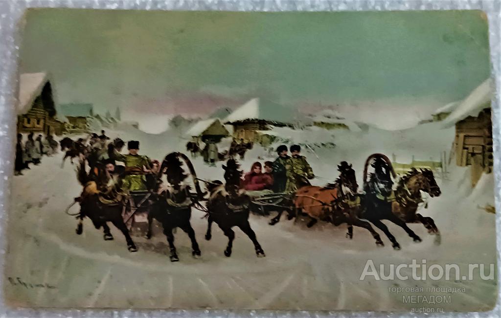 МАСЛЯНИЦА - РУССКАЯ ТРОЙКА - ОТКРЫТКА