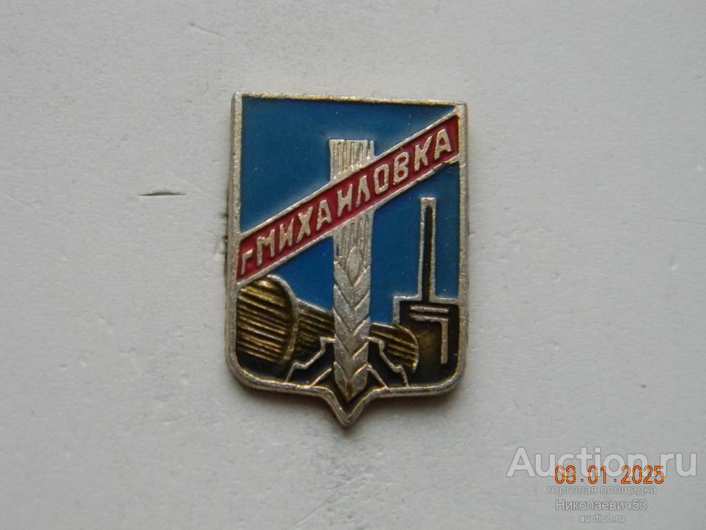 Значки герб г.Михайловка, серия Волгоградская-1 (обратная сторона гладкая), выпуск СССР, легкий металл, заколка, клеймо ВЗ. Состояние на скане.