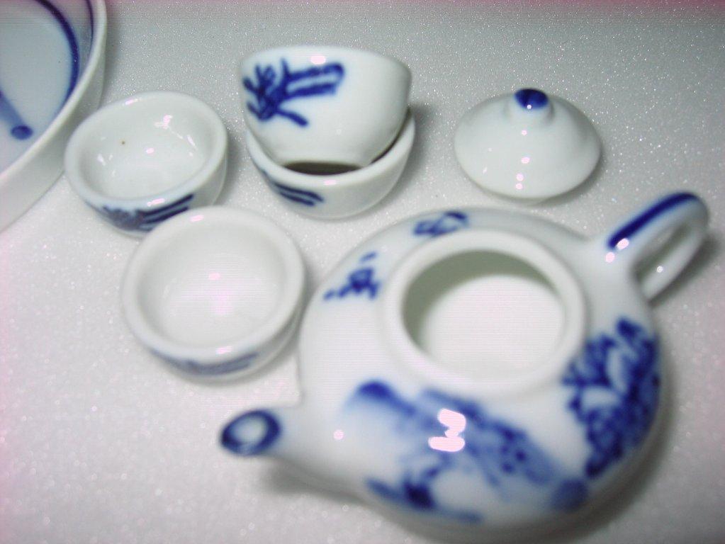 КУКОЛЬНЫЙ ЧАЙНЫЙ НАБОР.ДИАМЕТР БЛЮДА 8СМ,ВЕРХНИЙ ДИАМЕТР ПИАЛОК 2 СМ,ВЫСОТА ЧАЙНИЧКА С КРЫШКОЙ 3СМ.НОСИК У ЧАЙНИКА СКВОЗНОЙ.КЛЕЙМ НЕТ. НА ВЫКУП 5 ДНЕЙ!