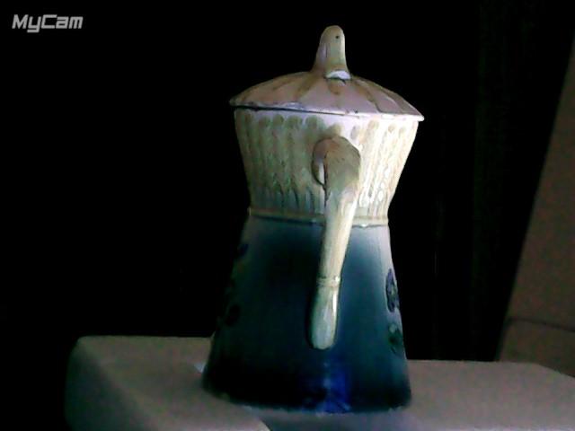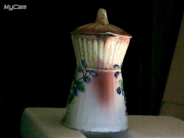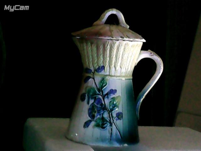 Фарфоровый молочник. Конец 19 века. Кузнецовский фарфор. Очень яркие краски. Дефекты: трещинки на сосуде и крышке, сколы на крышке, внутри чёрные точки по неизвестным причинам.