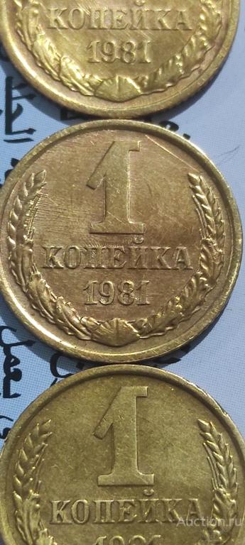 СССР 1981г 1 коп.XF+.Три монеты с похожим браком - СОУДАРЕНИЕ.Цена за каждую.