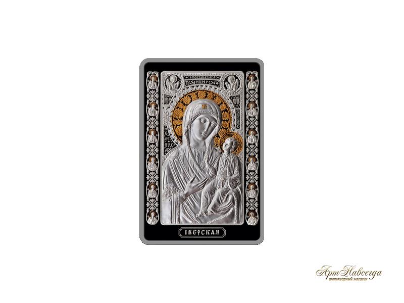 Монета "Икона Пресвятой Богородицы "Иверская"", изготовленная в 2013 году из серебра 925-ой пробы. Проба золота: 999.
