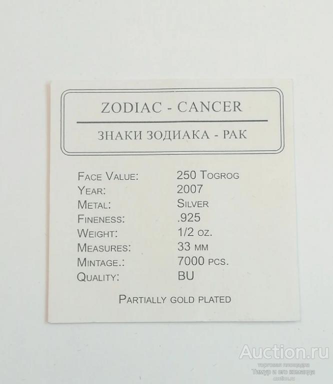Купите "Монета Рак серебро" по цене 2 900a.Покупайте сейчас, чтобы не упустить эту отличную цену на “Auction.ru”.