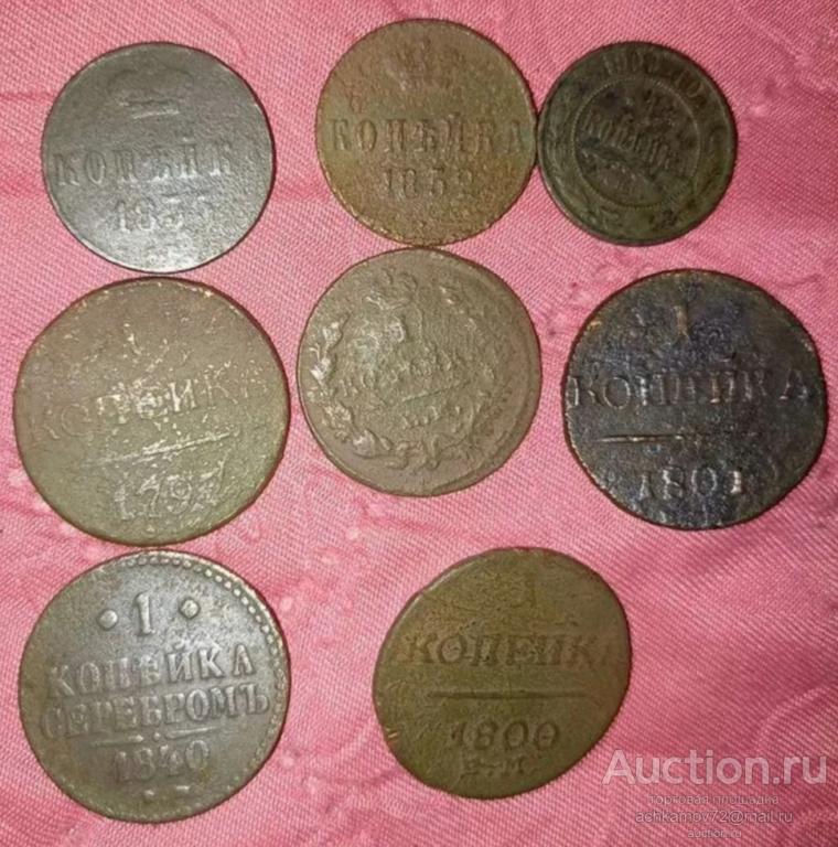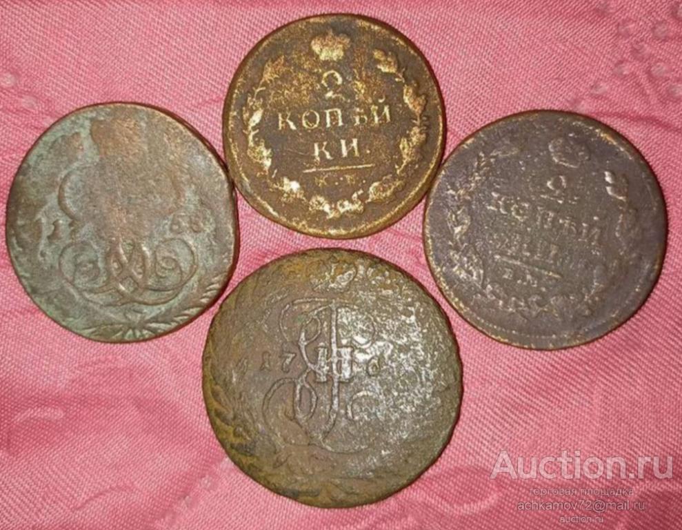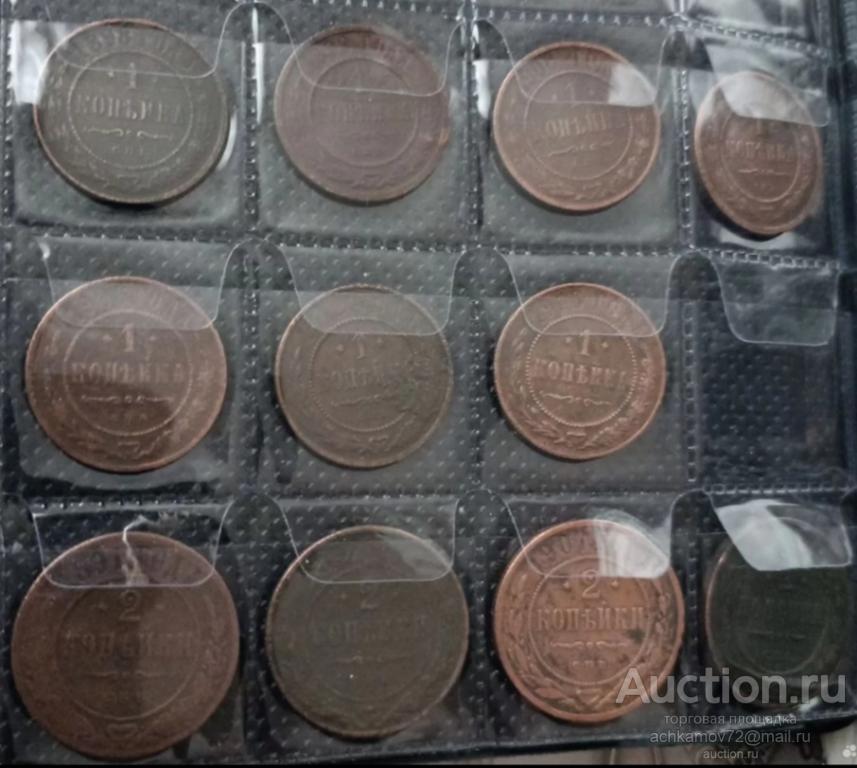 2 копейки 1758-1т, 1763-500, 1811-1т, 1818-1,5т, 1891-3т, 1898-500, 1899-200, 1907-500.
