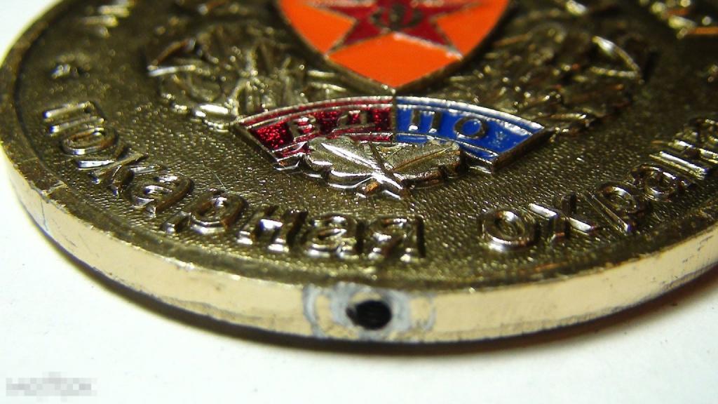 В нижней части медали имеется небольшое резьбовое отверстие на