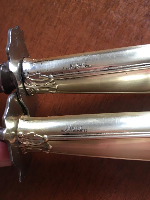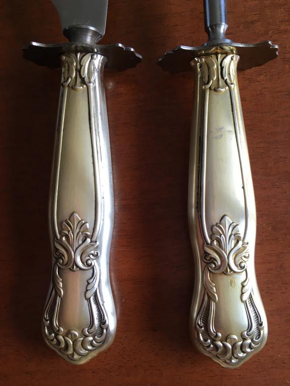 Набор нож и вилка стерлинговое серебро , набор большой , увесистый , с красивым рисунком , богато смотрится , длина ножа 34,5 см , вилка 29 см