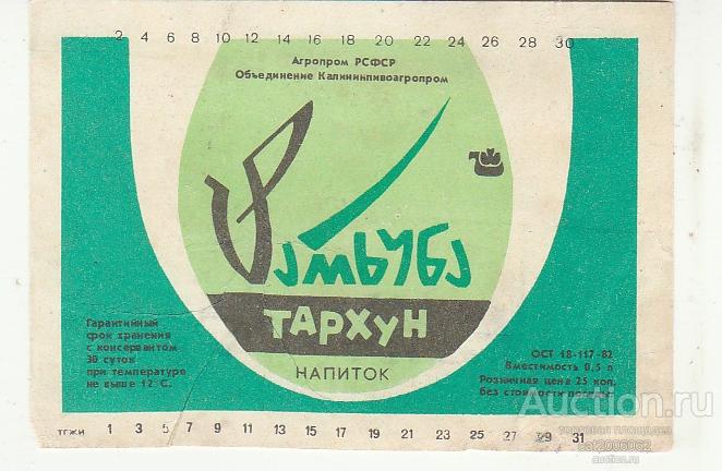 Напиток Тархун. Объединение Калининпивоагропром