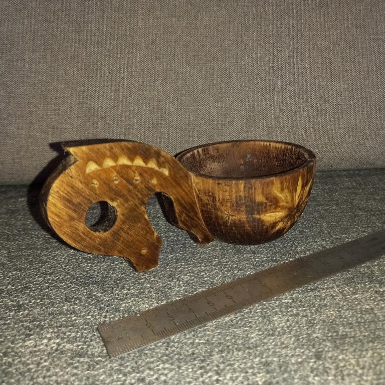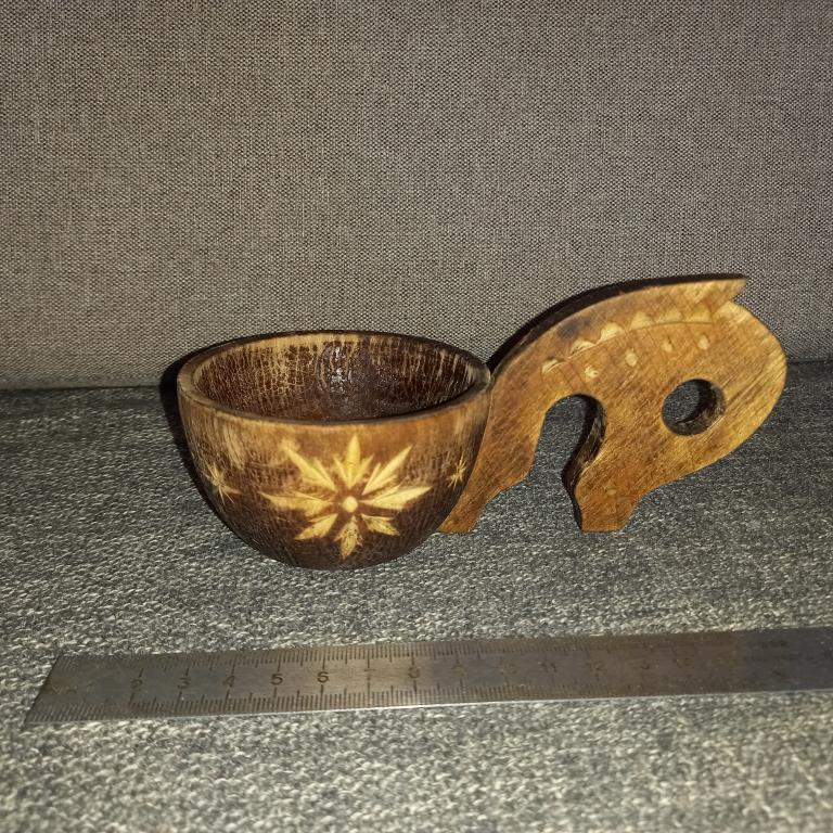 Небольшой старый деревянный ковшик с резьбой. 60 - 70-е гг.