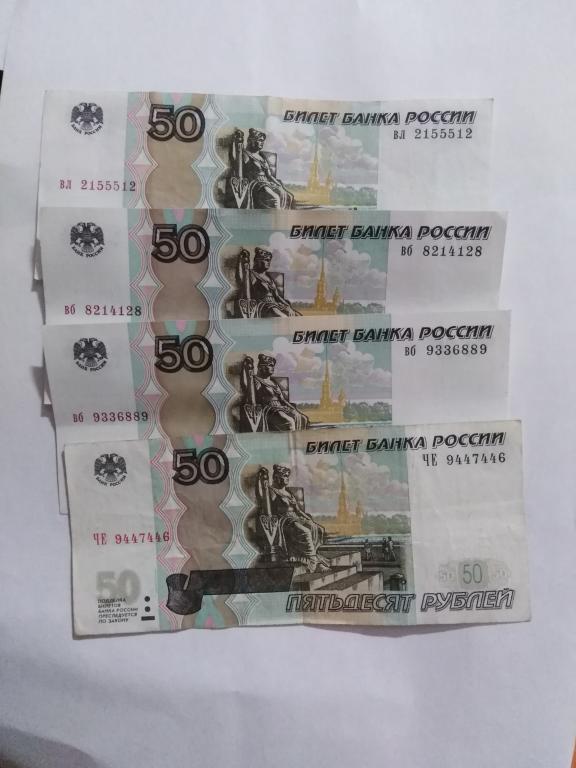 50 рублёвые купюры, с номерами радарами.