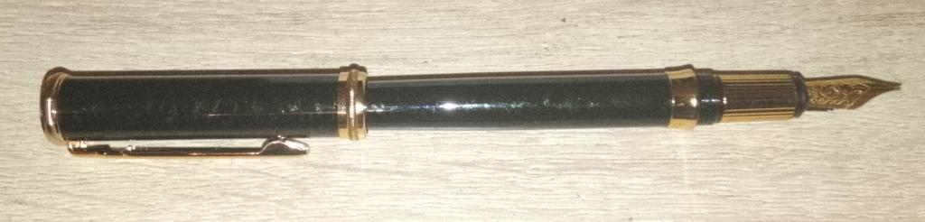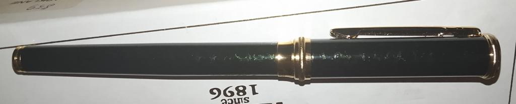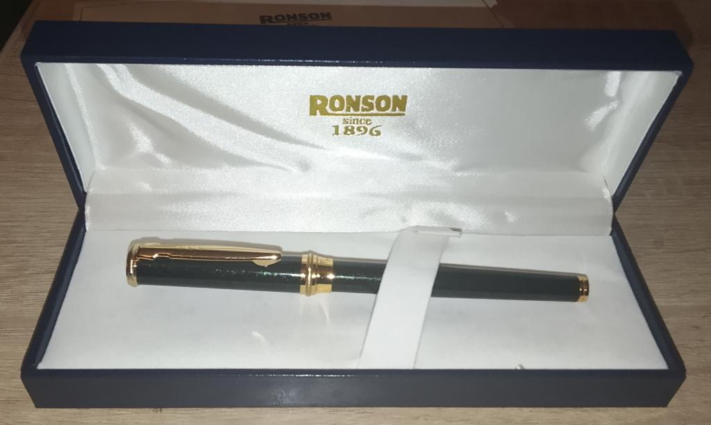Новая перьевая ручка Ronson рабочая. длина 13.5см, темно-изумрудный металлик с разводами, перо открытое iridium point. заправляется балончиками или съёмным конвектором (прилагается), в родной коробке