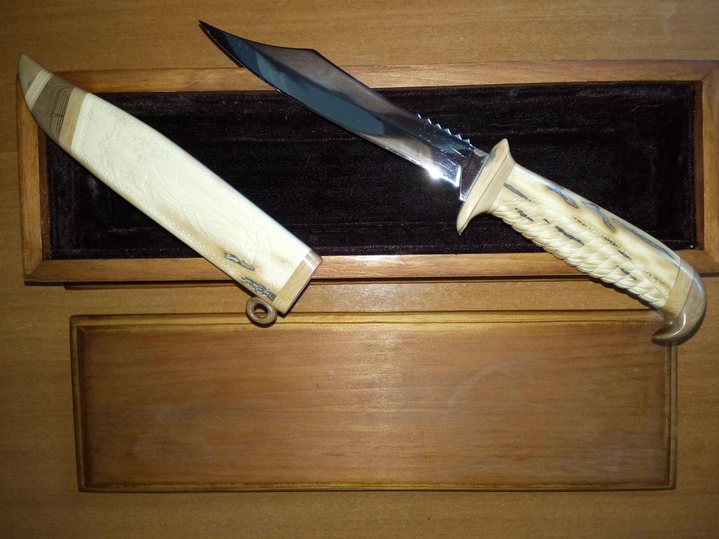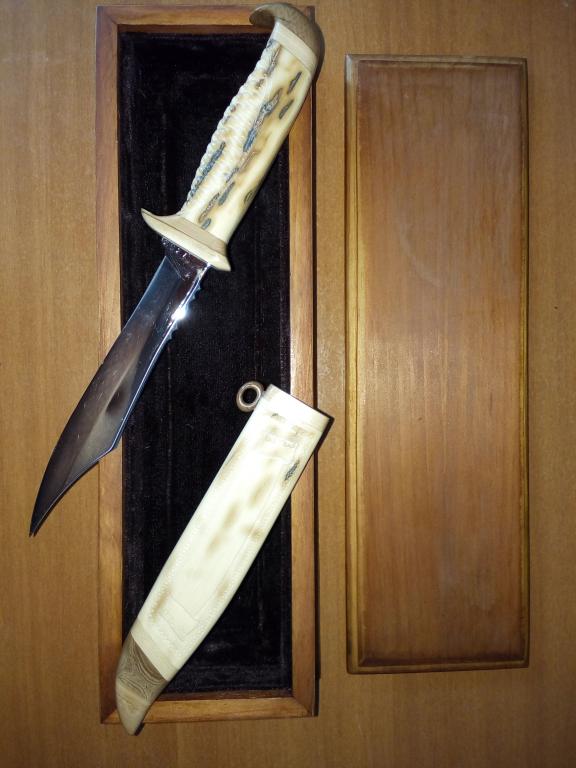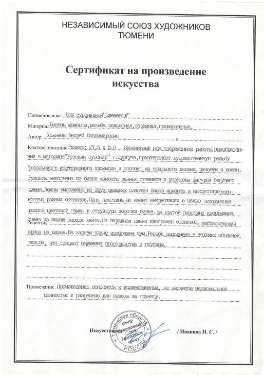 Нож сувенирный "Оленевод", рукоять и ножны выполнены из бивня мамонта.