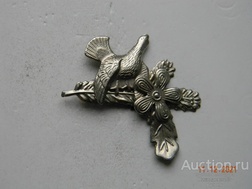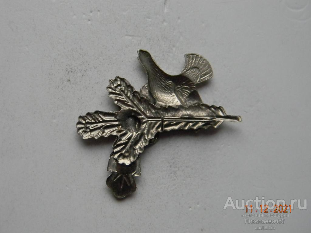 Значок Охота. Глухарь на ветке. Значок-кокарда на головной убор охотника, тяжелый металл, заколка, клеймо отсутствует. Состояние на скане.