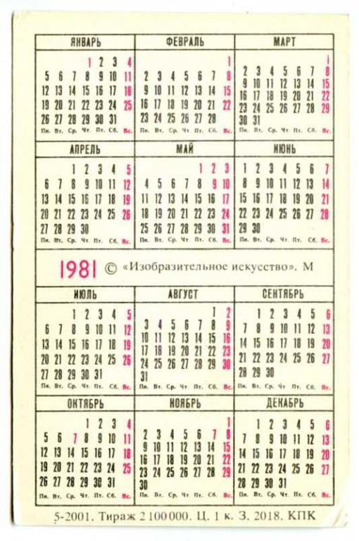 Карманный календарик