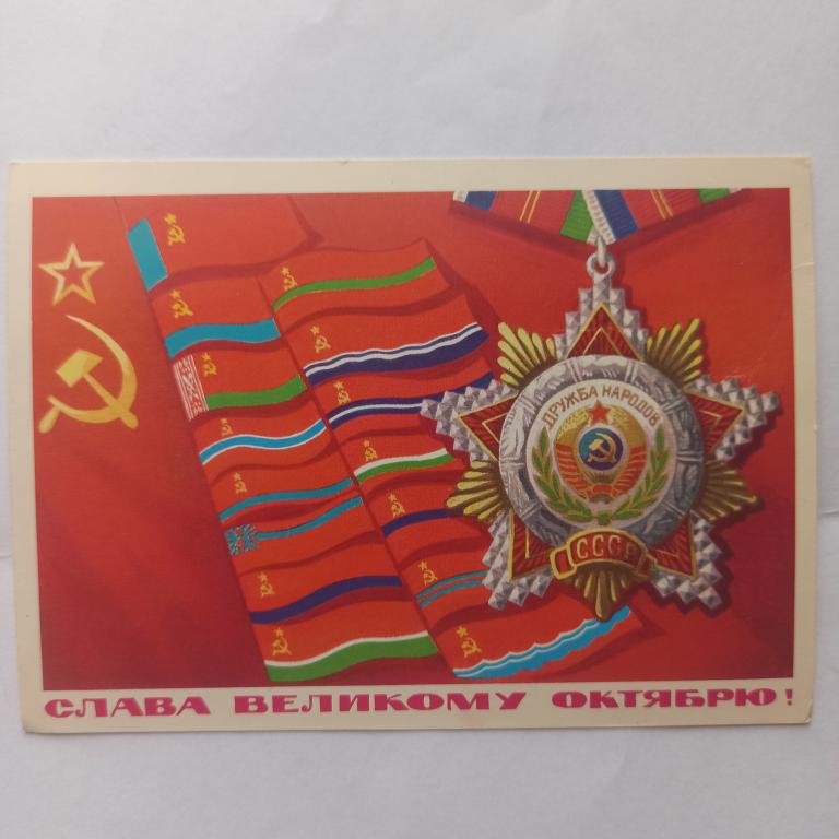 Открытка художника А. Байкова Слава великому Октябрю! год издания 1977г. Чистая Состояние хорошее
