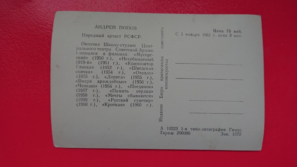 Купите "Открытка 1960 Артист Попов" по цене 60a.Покупайте сейчас, чтобы не упустить эту отличную цену на “Auction.ru”.