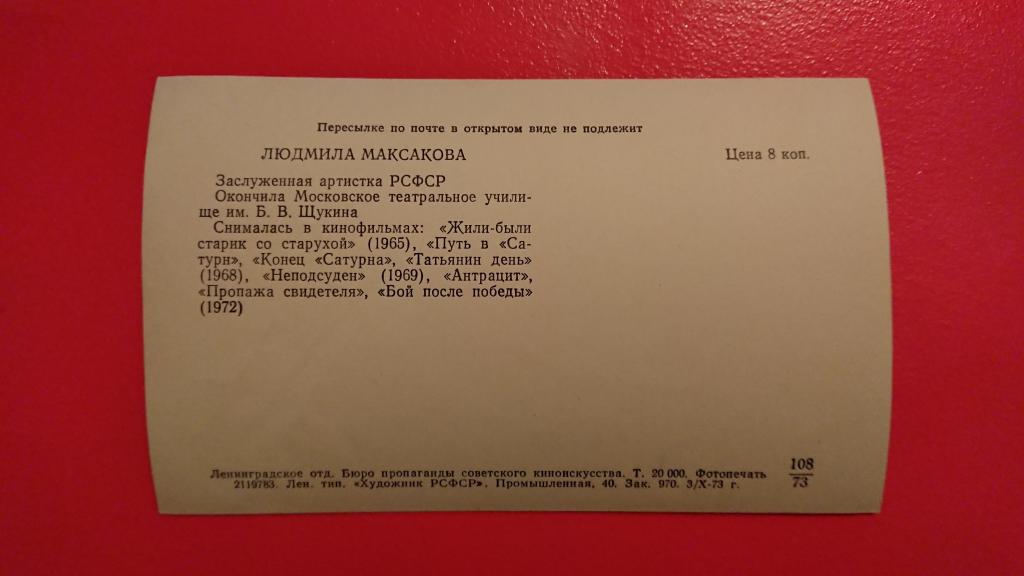 Купите "Открытка 1973 Артист Максакова" по цене 40a.Покупайте сейчас, чтобы не упустить эту отличную цену на “Auction.ru”.