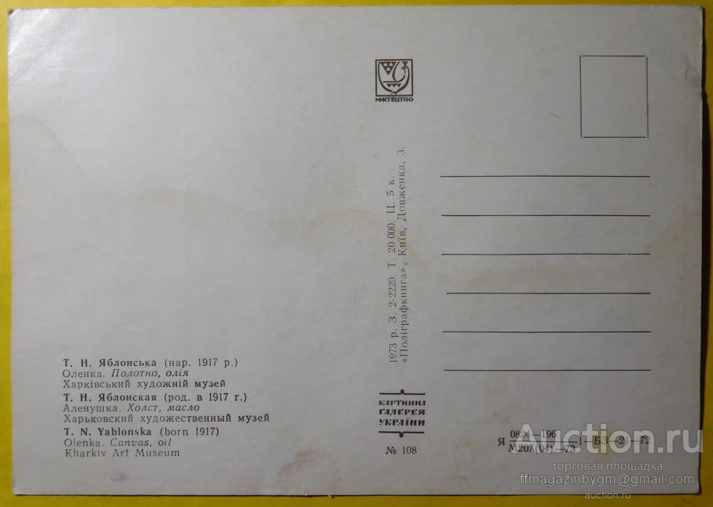 Открытка - Аленушка (Яблонская) "Мистецтво" Киев