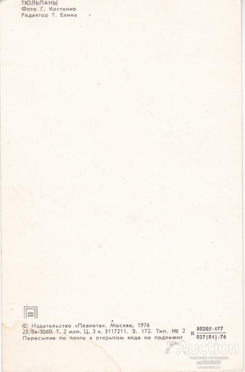 Оплата на карту Сбербанка. Стоимость пересылки по тарифам Почты. Покупая несколько лотов - экономите на доставке. По окончании торгов покупатель первым выходит на связь.