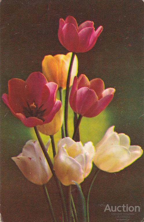 Открытка цветы Тюльпаны. 1976г
