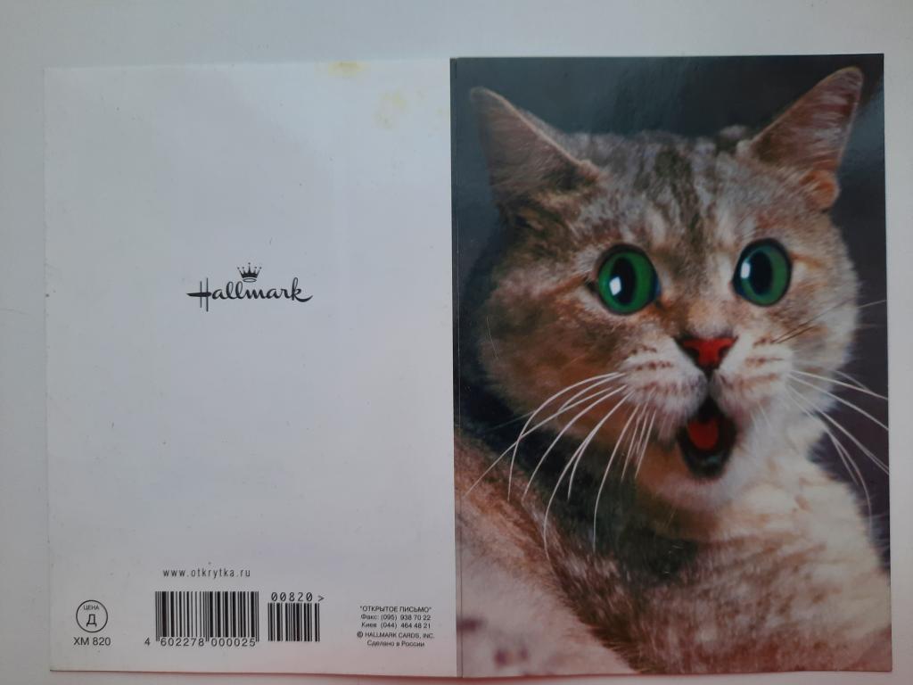 Открытка Котик складывающаяся. Внутри надписана. 1990-е