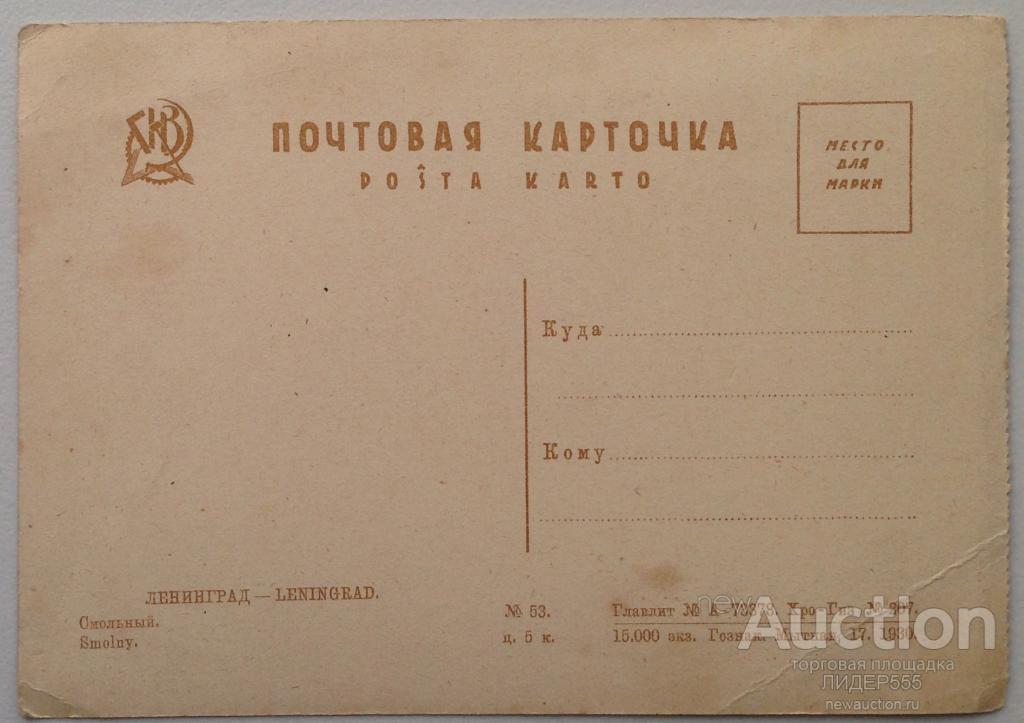 Купите "ОТКРЫТКА ЛЕНИНГРАД. СМОЛЬНЫЙ" по цене 1 500a.Покупайте сейчас, чтобы не упустить эту отличную цену на “Auction.ru” или сделайте свое предложение продавцу.
