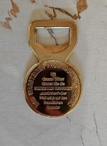 Сувенирная металлическая открывалка для бутылок от немецкой пивной марки Warsteiner.