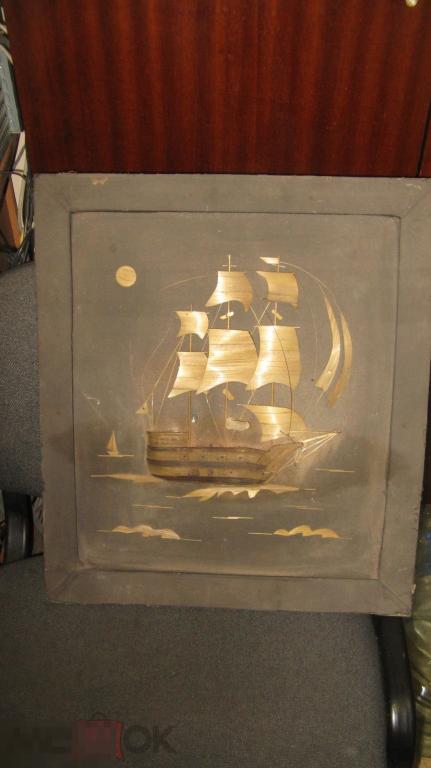 пано парусник матерьял,дерево состояние на фото