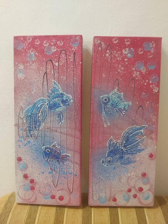 Продается пара картин рыбок. В хорошем состоянии. Выглядят вполне антуражно.