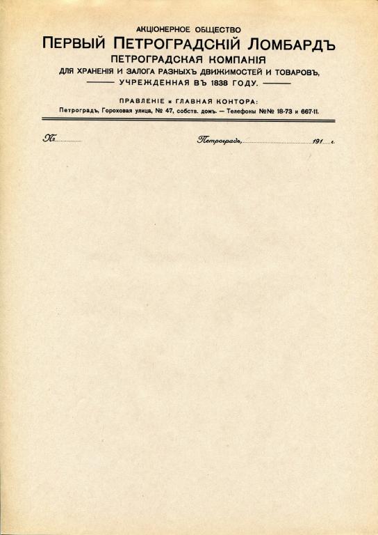 Первый Петроградский Ломбард бланк. КОПИЯ. Репринт на старой бумаге. В УФ не светится.