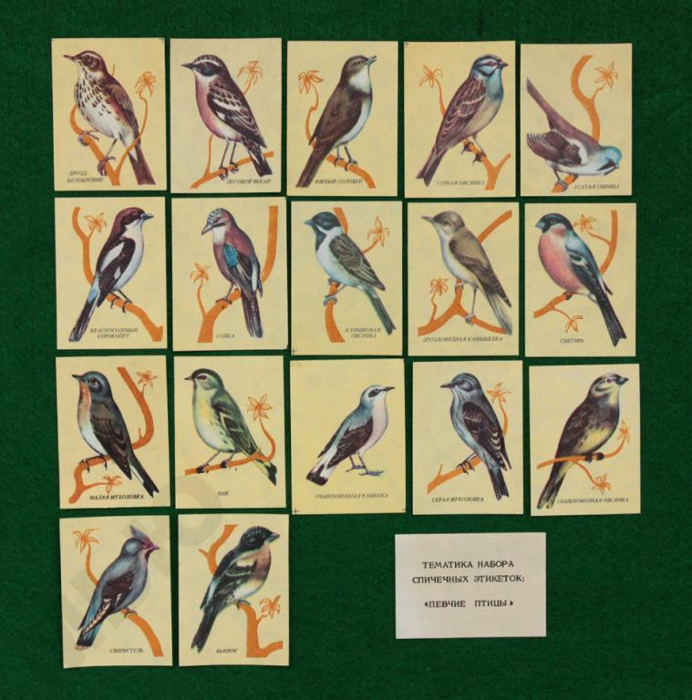 Спичечные этикетки Певчие ПТИЦЫ выпуск ~ 1980-е.