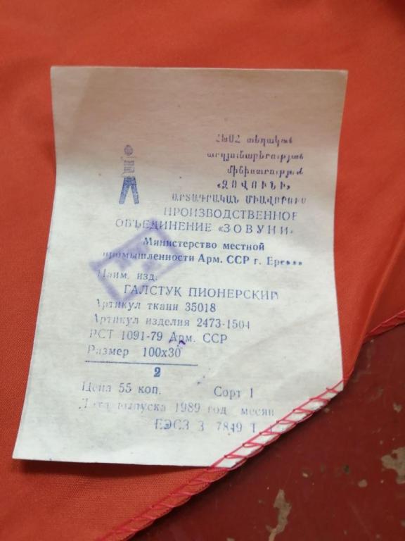 Пионерский галстук производства Арм ССР г.Ереван. Новые с этикеткой.1989 года производства. В количестве 28 штук