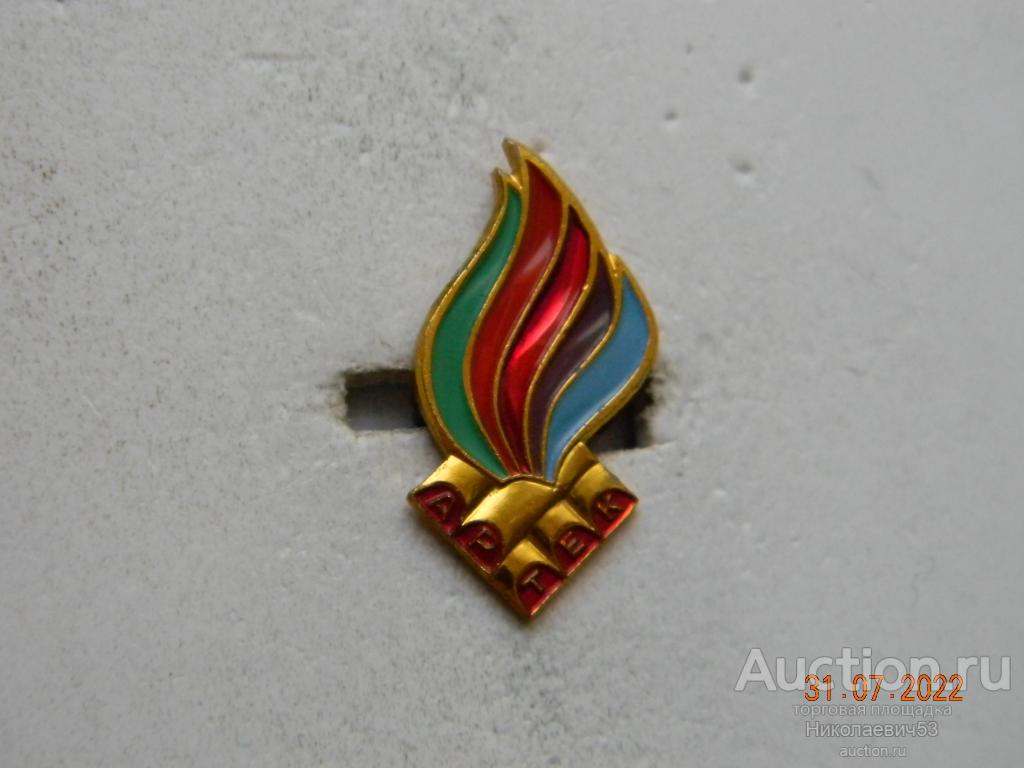 Значок Пионерский лагерь "Артек", выпуск СССР, легкий металл, заколка, клеймо ММД. Состояние на скане
