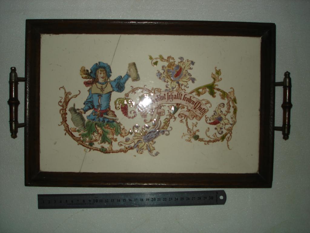 Пивной поднос, метлахкская плитка (Mettlach), изготовитель Villeroy&Boch, 1880-1900 год.