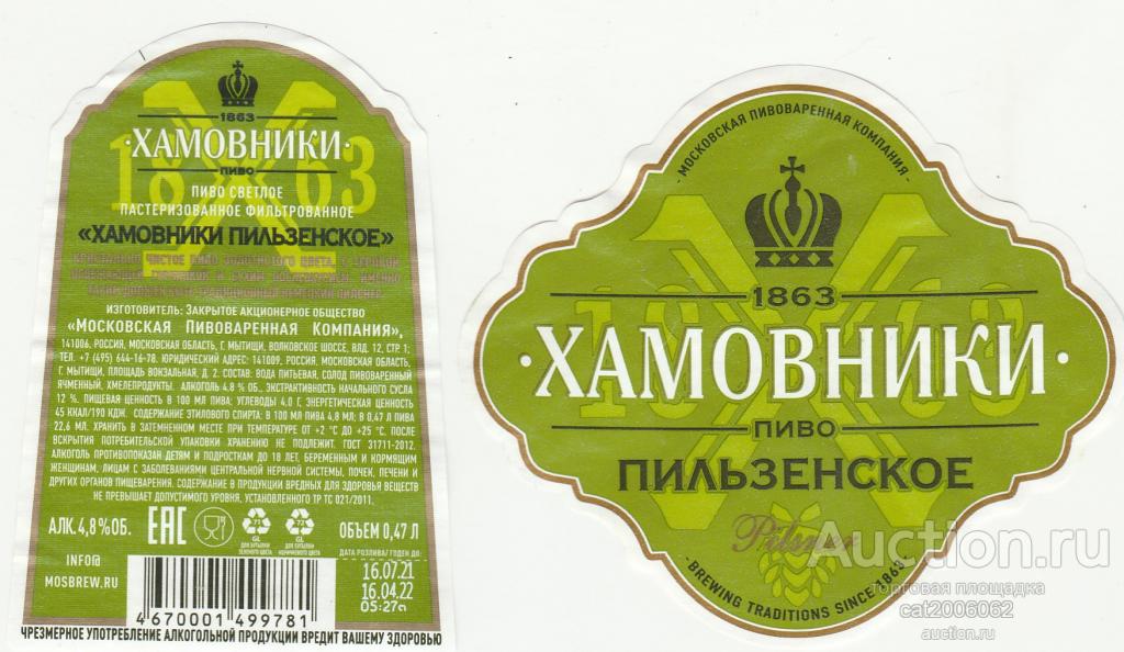 Пиво Хамовники пильзенское