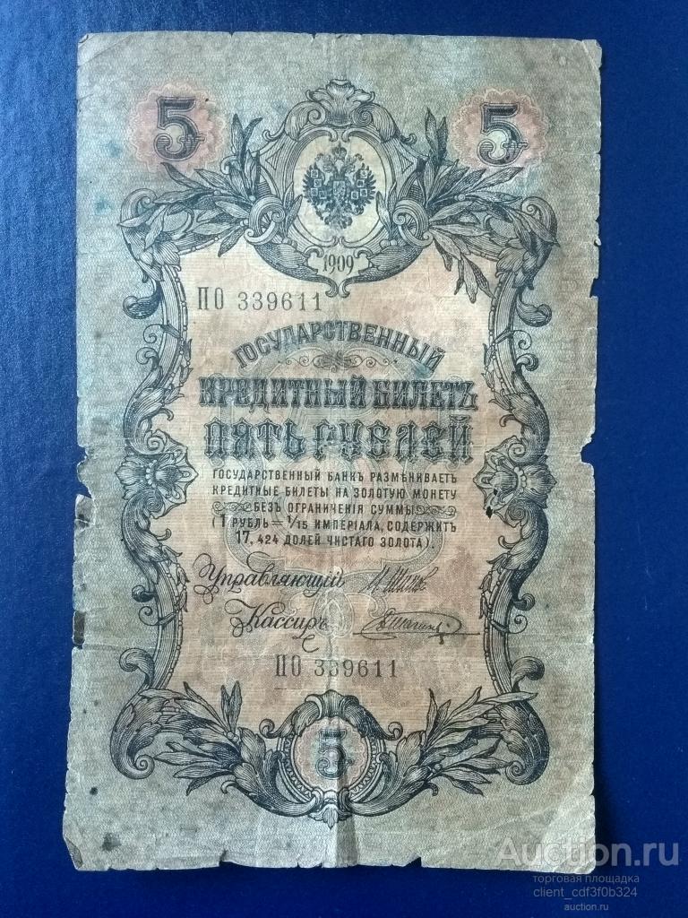 Пять рублей 1909 года.