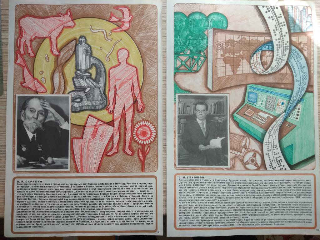Плакаты из серии "Люди большой науки" 1971г. На первом фото - обложка(не сохранилась). Неполный комплект.