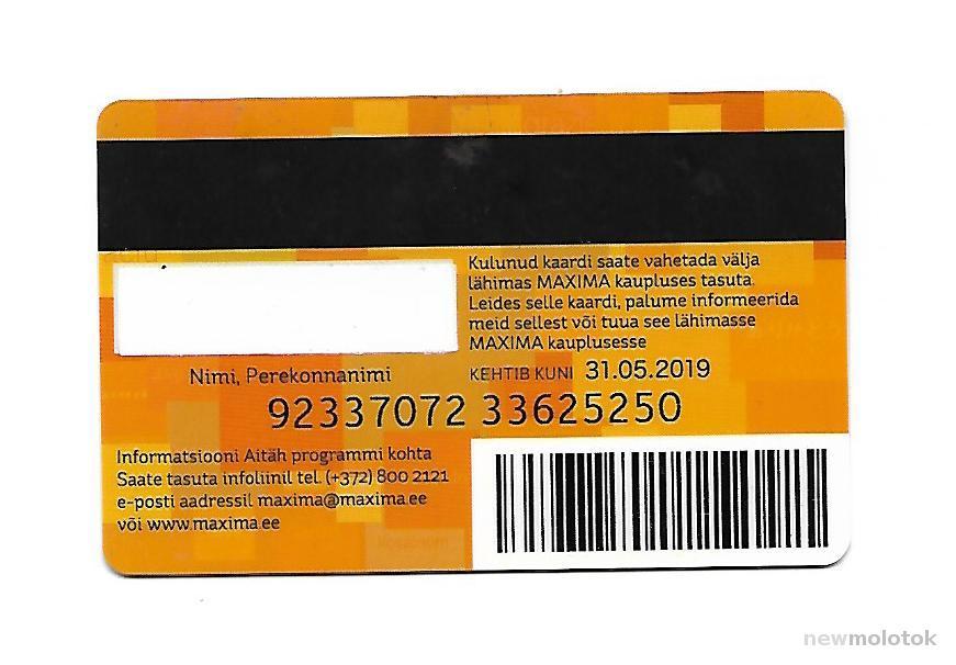 Пластиккарт Максима в Эстонии. Оплатить лот можно в Сбербанк или МТС. Отправка по России из Ивангорода