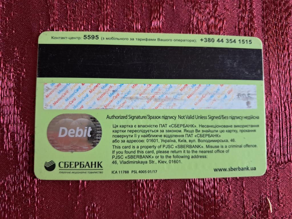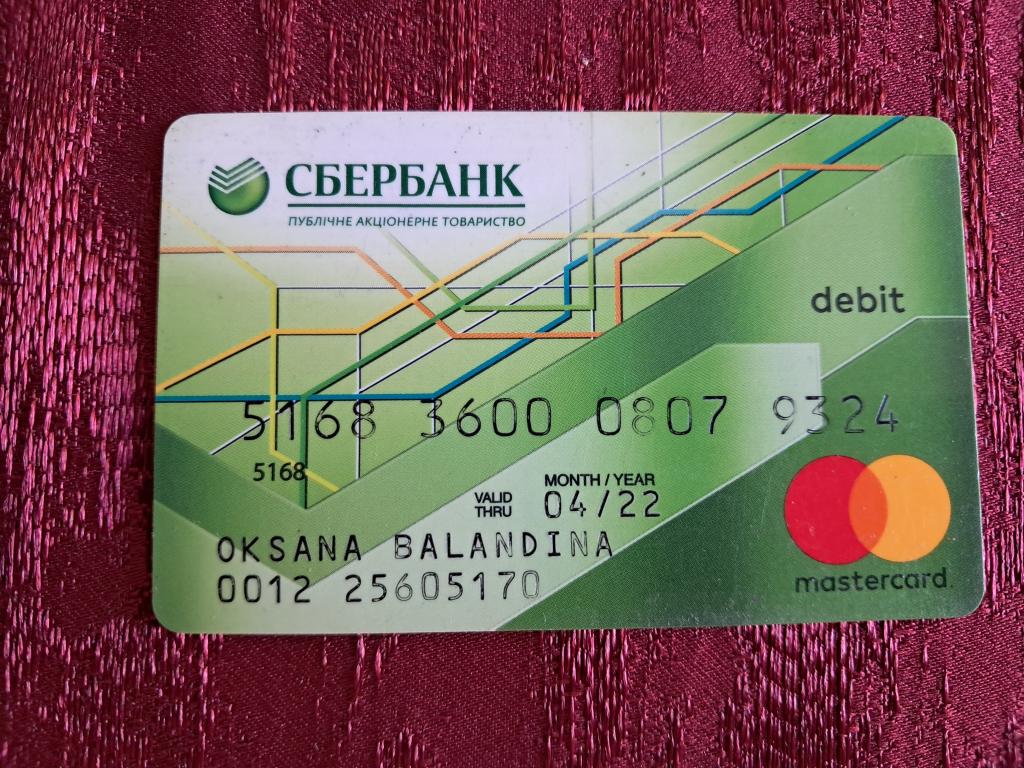 Пластиковая карта. Сбер. Укр.