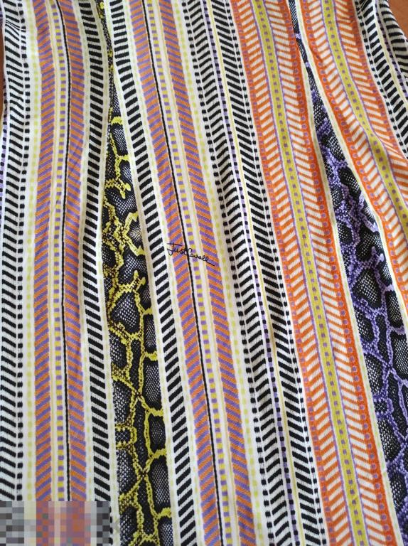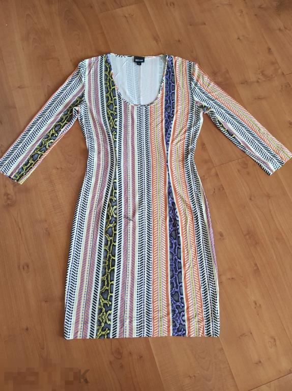 Платье от мэтра итальянской моды Роберто Кавалли, Just Cavalli. Приятный принт, вроде просто полоски но с фирменный добавлением змеи и логотипа. Размер 46, по бирке 175/96А, реально на 48. или 46 но с грудью и бедрами. Грудь 48см, бедра 50см, длина 100см. Ткань эластичная и должна облегать фигуру. Глубокий вырез, рукав укорочен, и длина выше колена. Идеальное состояние.