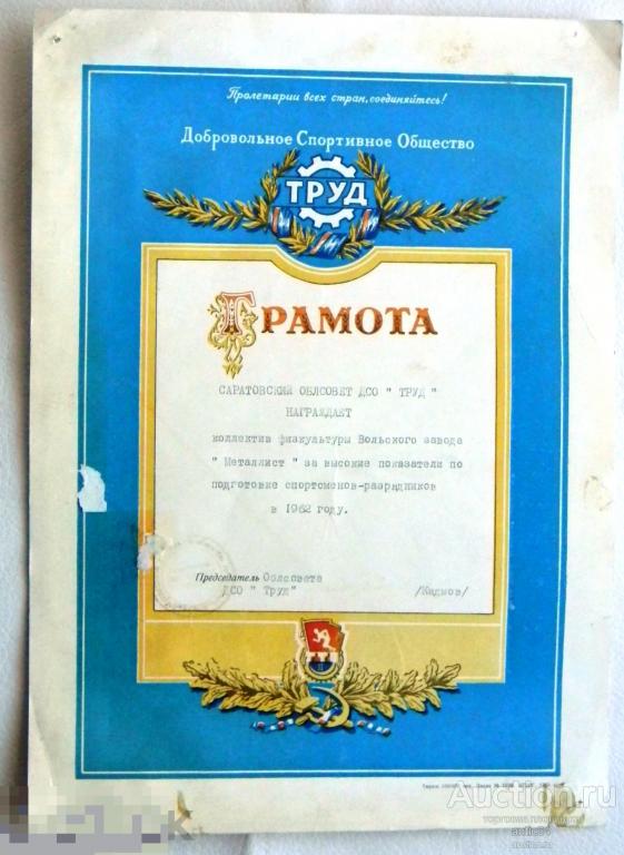 Почетная Грамота ДСО "ТРУД"